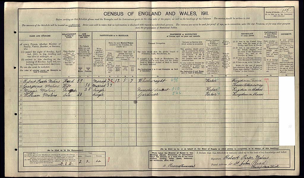 1911 Census Schedule # 115