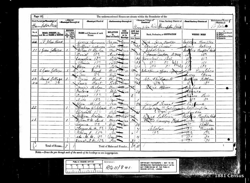 1881 Census Schedule # 52
