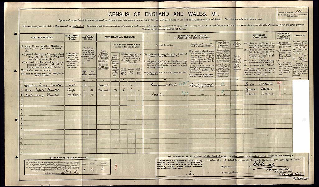 1911 Census Schedule # 120